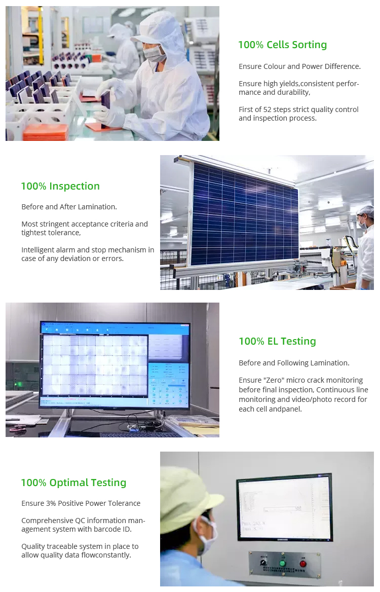 * Excellente garantie de performance anti-PID via un processus de production de masse optimisé et un contrôle des matériaux