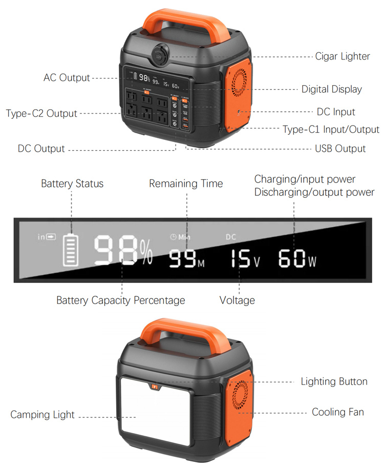 La centrale solaire prend en charge le chargement d'une imprimante, d'un projecteur, d'un drone, d'un ventilateur, d'une machine à café, d'un liquide, d'un lave-linge, d'un réfrigérateur, d'une LED, d'un téléviseur, d'un purificateur, d'une charge USB, d'un PD, d'un ordinateur, etc.